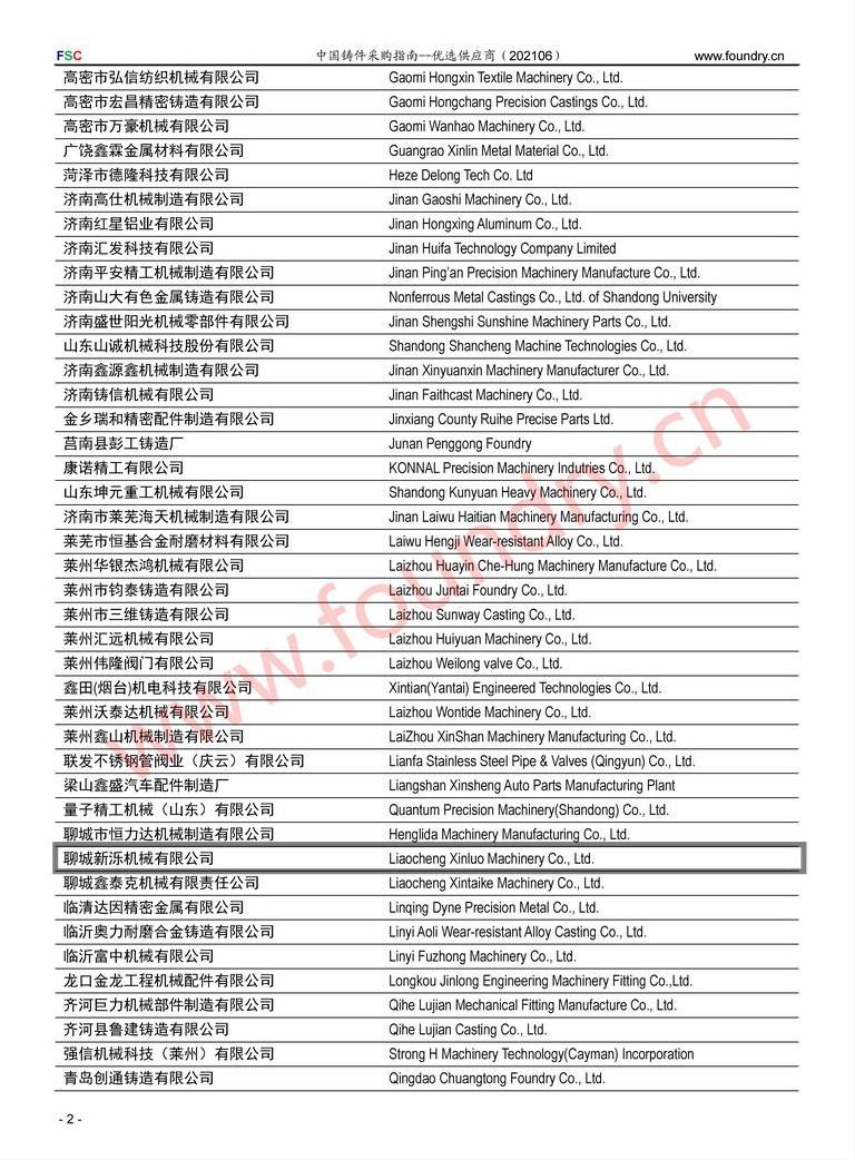 中国铸件采购指南 - 优选供应商正式发布:我公司赫然在列